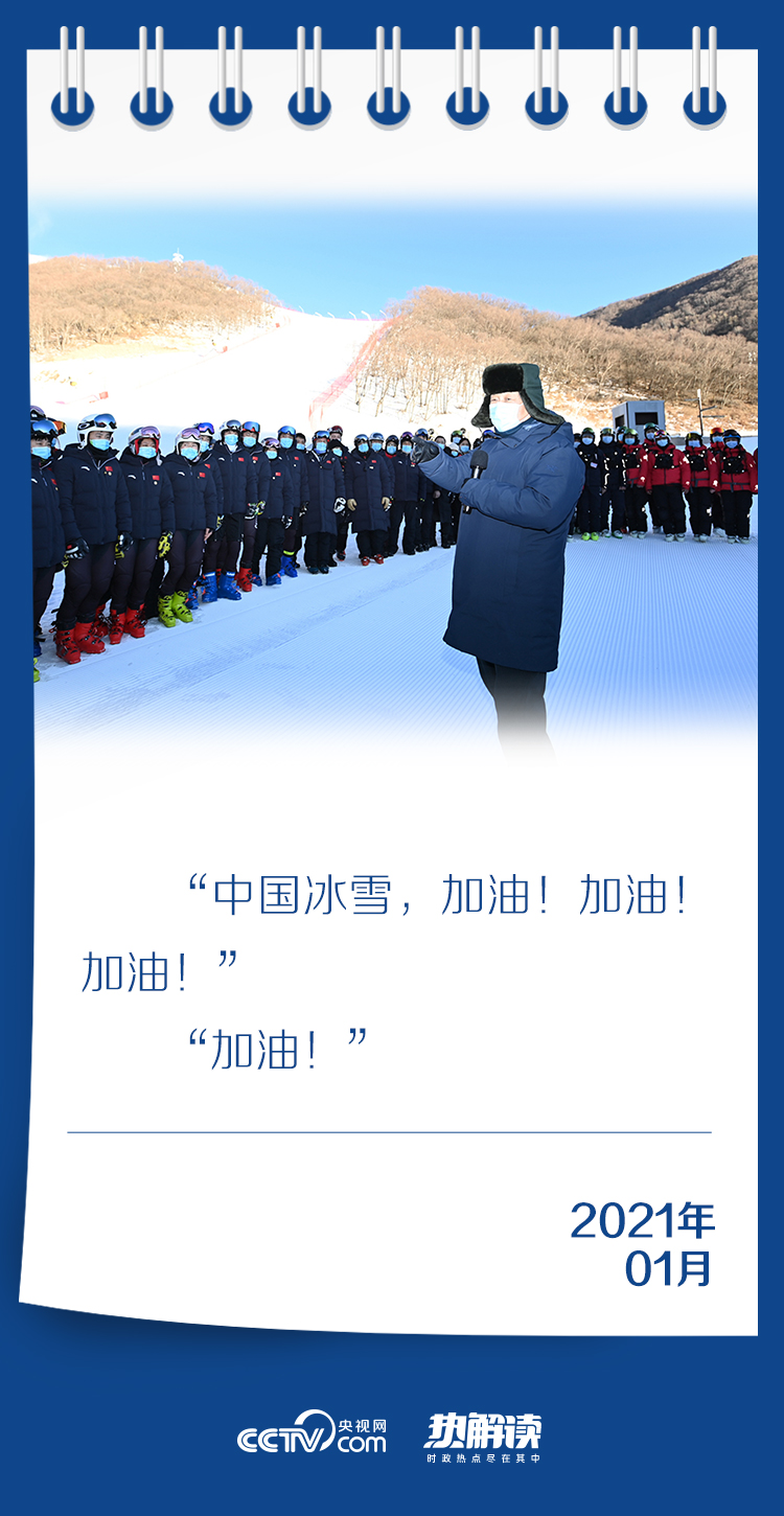 塞上岁首,白雪皑皑。2021年首次国内考察,习近平总书记走进北京、河北两地三赛区,再次来到冰雪健儿们中间,为中国冰雪加油。