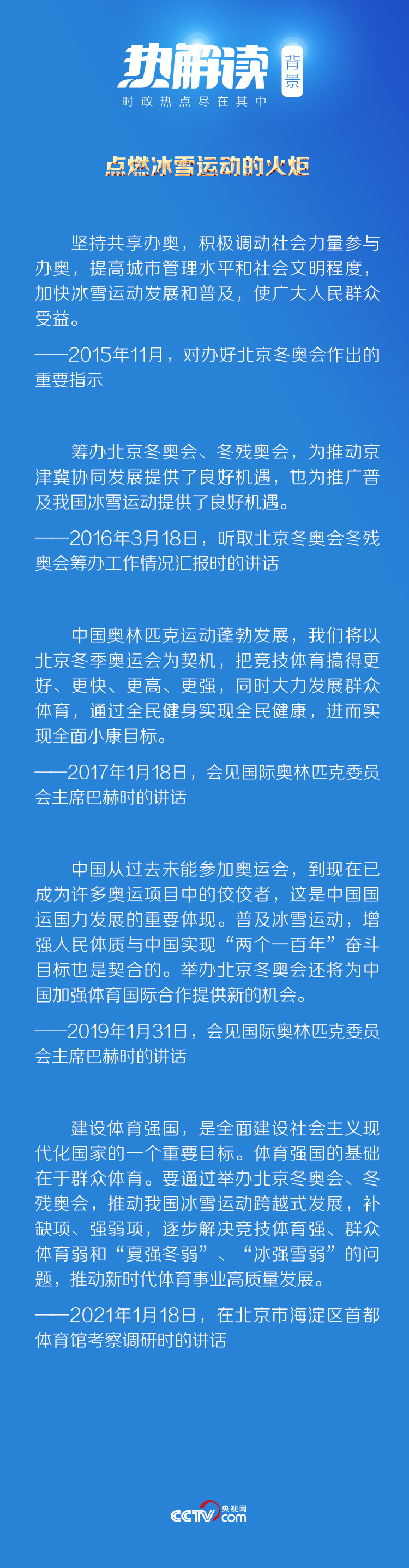 2017年2月,习近平总书记曾引用这句诗寄语冰雪健儿,希望以北京冬奥会为契机,把冰雪运动各个项目开展起来,促进冰雪运动在我国全面开展。