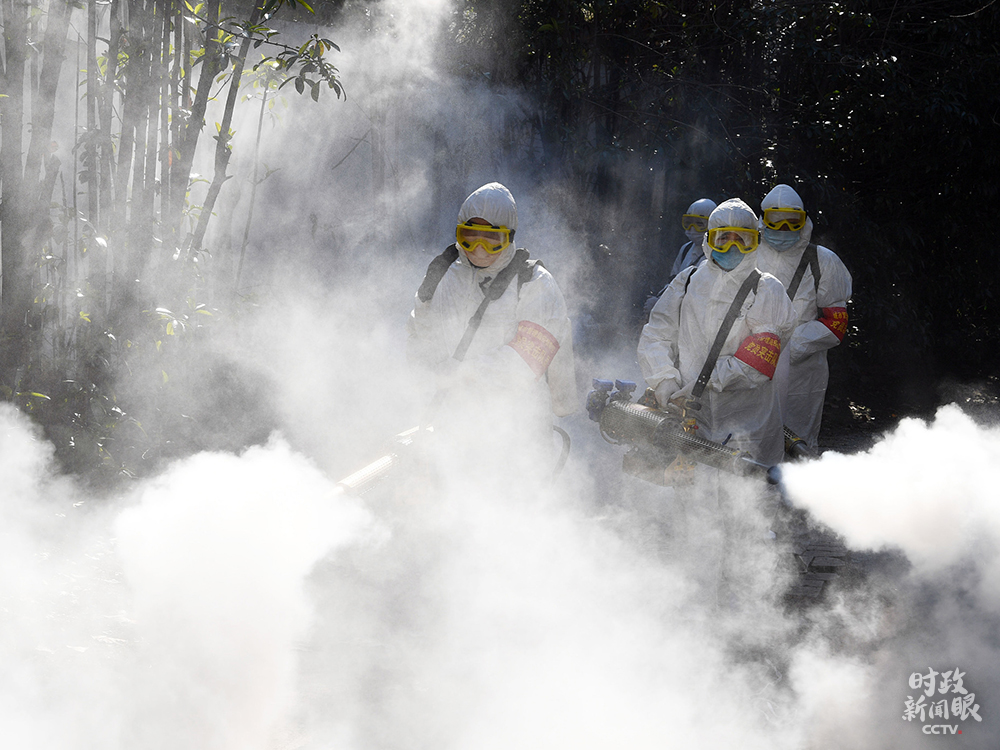 △2020年2月,安徽亳州市,环卫党员突击队队员对社区进行防疫消杀。