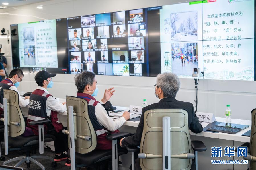 2020年4月22日,在马来西亚吉隆坡,中国赴马抗疫医疗专家组与马各地中医药界人士视频连线。新华社记者 朱炜 摄