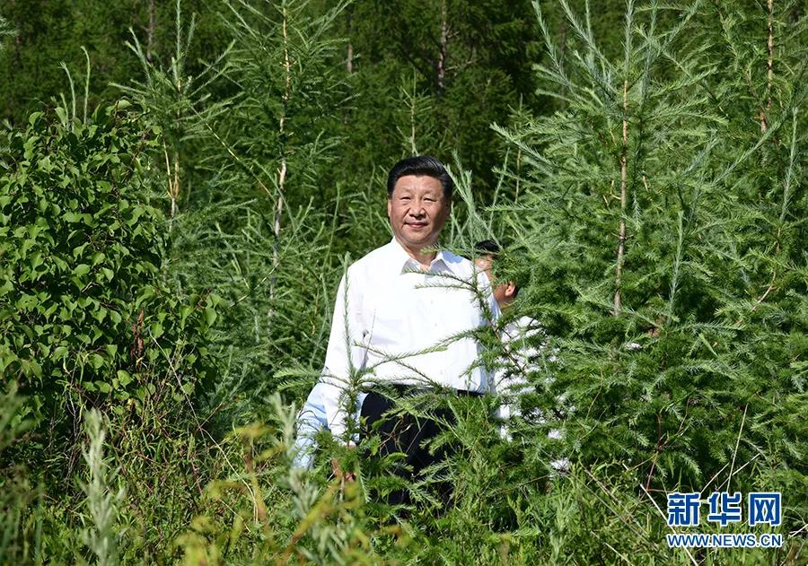 2019年7月15日,中共中央总书记、国家主席、中央军委主席习近平赴内蒙古自治区考察调研。这是习近平在赤峰市喀喇沁旗马鞍山林场了解生态文明建设情况。新华社记者 谢环驰 摄