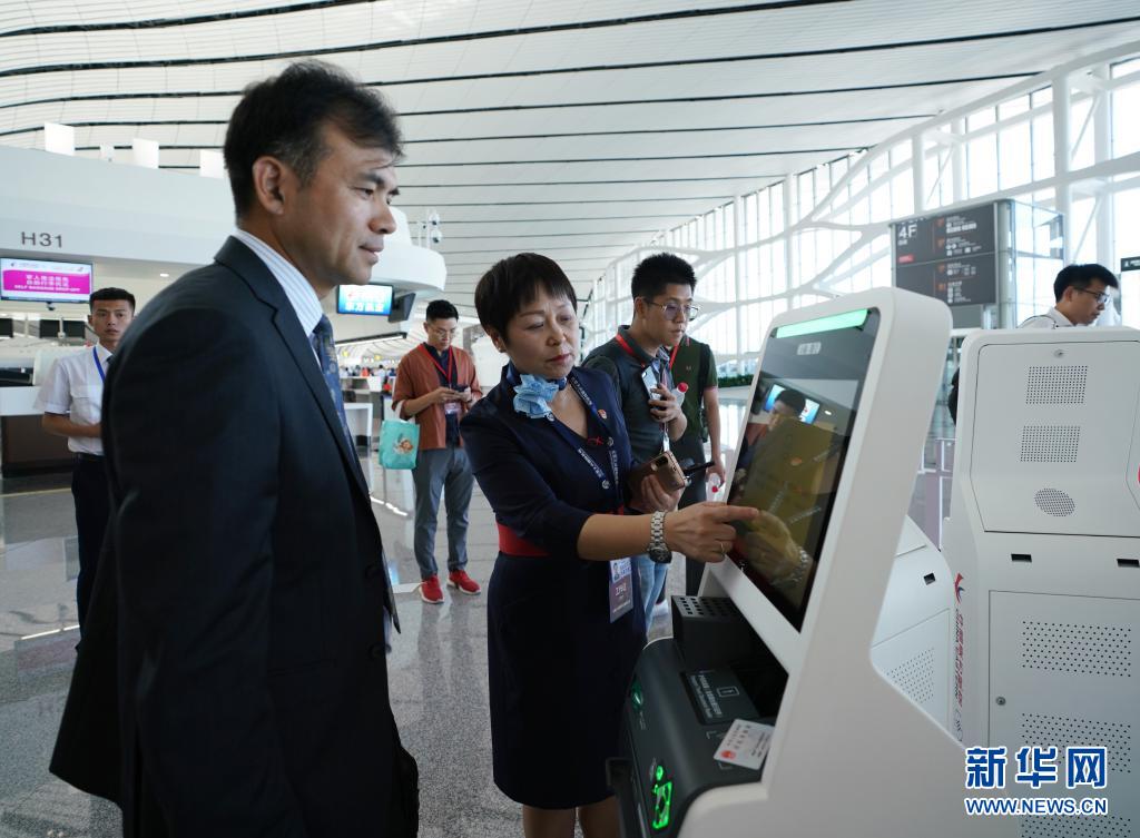 在值机柜台前,习近平总书记察看智能技术、全自助无纸化智慧值机的流程,对机场采用现代化设施为旅客提供便利服务的做法表示肯定。
