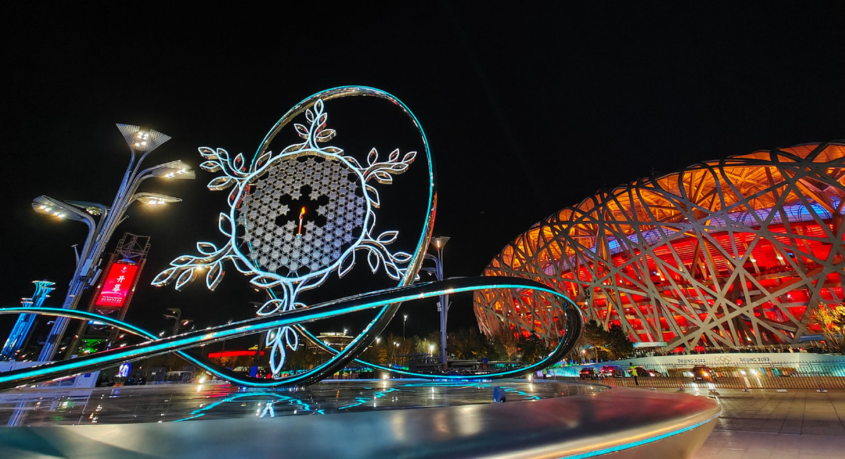 Earlier, seven torchbearers, including current and retired Chinese athletes, completed the final stage of the torch relay into the venue, also known as the Bird's Nest, and where the opening and closing ceremonies of the 2008 Beijing Olympics were also staged.