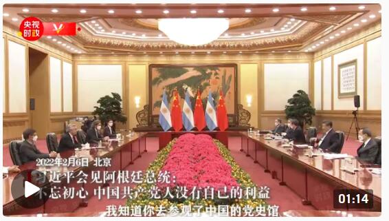 △独家视频丨习近平会见阿根廷总统:不忘初心 中国共产党人没有自己的利益