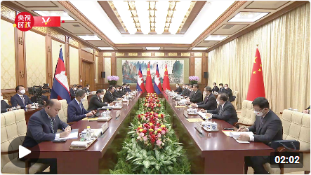 习近平指出,3年前,首相先生顶风冒雪“逆行”访华,同正在抗击新冠疫情的中国人民坚定站在一起。今年是中国全面贯彻落实中共二十大精神的开局之年,也是中柬建交65周年。我很高兴同你实现“三年之约”,在新春之际共同开启中柬命运共同体建设新时代。