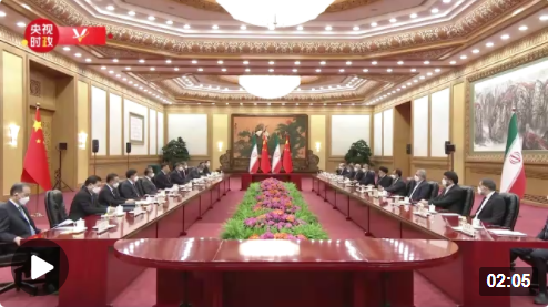 2月14日下午,国家主席习近平在人民大会堂同来华进行国事访问的伊朗总统莱希举行会谈。