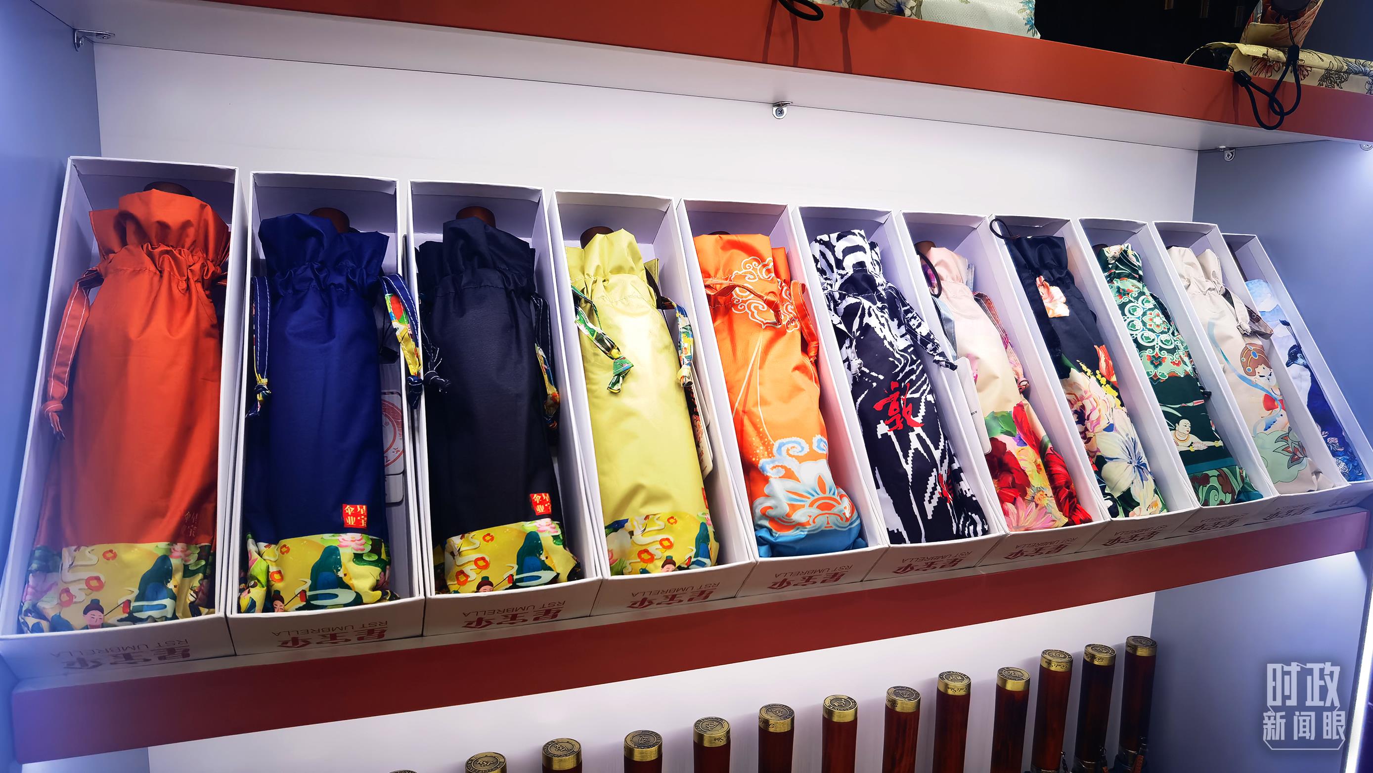 △商贸城内的一家伞铺,货架上摆放着包装精美的雨伞。(总台央视记者范学禹拍摄)