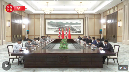 9月23日下午,国家主席习近平在杭州西湖国宾馆会见来华出席第19届亚洲运动会开幕式并进行正式访问的尼泊尔总理普拉昌达。 习近平指出,中国和尼泊尔山水相连、世代友好。中方高度重视中尼关系,愿同尼方加强发展战略对接,推动中尼关系不断取得新进展。 普拉昌达说:“主席阁下,我深感殊荣,能够同您在美丽的杭州会面,这是我第五次同您会面。主席阁下,您是当今时代富有远见的伟大领导人,也是尼泊尔真正的朋友。感谢您能邀请我出席亚运会开幕式。本届亚运会传递的信息,在于巩固亚洲各国的关系,增进各国人民的相互了解。”