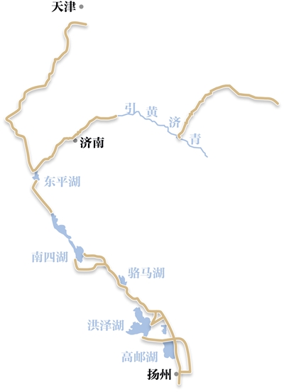南起江苏扬州的长江岸畔,北至天津,东抵胶东半岛,南水北调东线,宛如清水长廊,润苏北,济齐鲁。