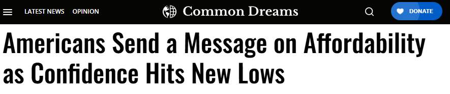 “基层合作组织”(Groundwork Collaborative)政策与倡导部门主管亚历克斯·雅克兹指出,美民众对经济的信心下滑源于实际生活压力的加重。他认为,当前政府在经济管理上未能有效改善民生,反而导致家庭债务创下新高,物价不断上涨,信心指数自然跌至低谷。