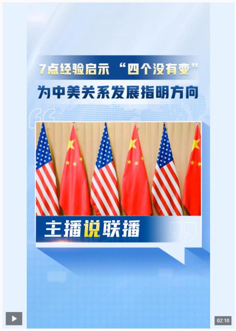 这场会见,各界高度关注,习近平主席高屋建瓴阐明中美关系的战略性、方向性、指导性意见。就过去四年中美关系发展带来的经验启示,习主席强调了7点,包括:要有正确的战略认知,要言必信、行必果,要平等相待,不能挑战红线、底线,要多搞对话合作,要回应人民期待,要展现大国担当。这当中,习主席还明确列出了中方的4条红线,分别是台湾问题、民主人权、道路制度、发展权利,这些不容挑战。展望未来,习主席特别强调“四个没有变”,即中方致力于中美关系稳定、健康、可持续发展的目标没有变,按照相互尊重、和平共处、合作共赢处理中美关系的原则没有变,坚定维护自身主权、安全、发展利益的立场没有变,赓续中美人民传统友谊的愿望没有变。