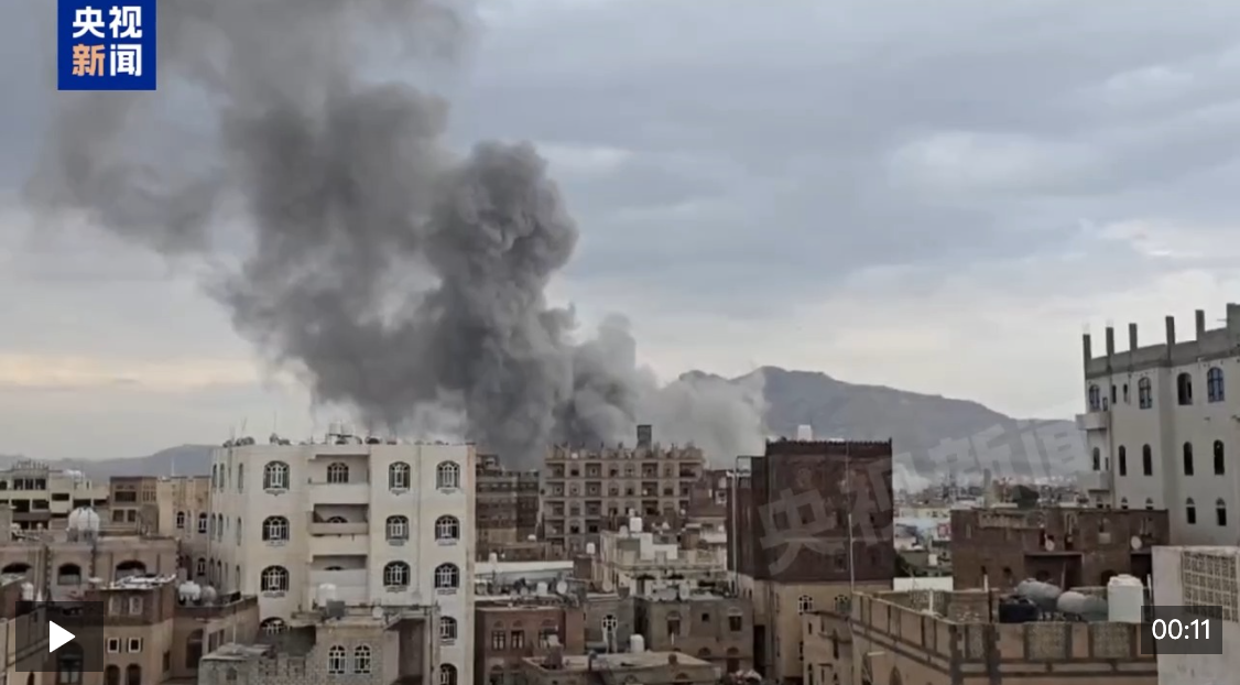据总台报道员消息,当地时间10日下午,以色列再次空袭也门首都萨那。