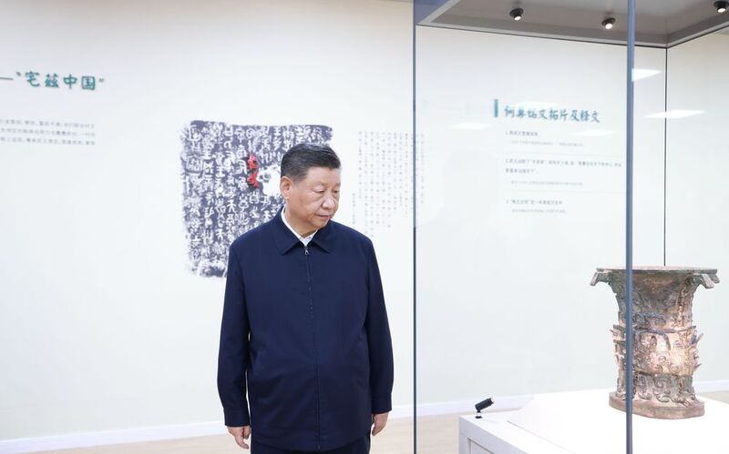 在陕西宝鸡青铜器博物院,总书记在国宝级青铜器——何尊前驻足凝视。他指出:“中华文明五千年,还要进一步挖掘,深入研究、阐释它的内涵和精神,宣传好其中蕴含的伟大智慧,从而让大家更加尊崇热爱,增强对中华文明的自豪感,弘扬爱国主义精神,把中华优秀传统文化一代一代传下去。”