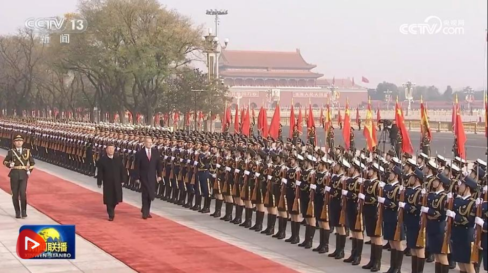 11月12日上午,国家主席习近平在北京人民大会堂会见来华进行国事访问的西班牙国王费利佩六世。