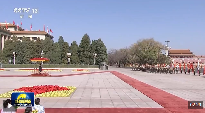 会见前,习近平和夫人彭丽媛在人民大会堂东门外广场为哇集拉隆功和王后素提达举行欢迎仪式。