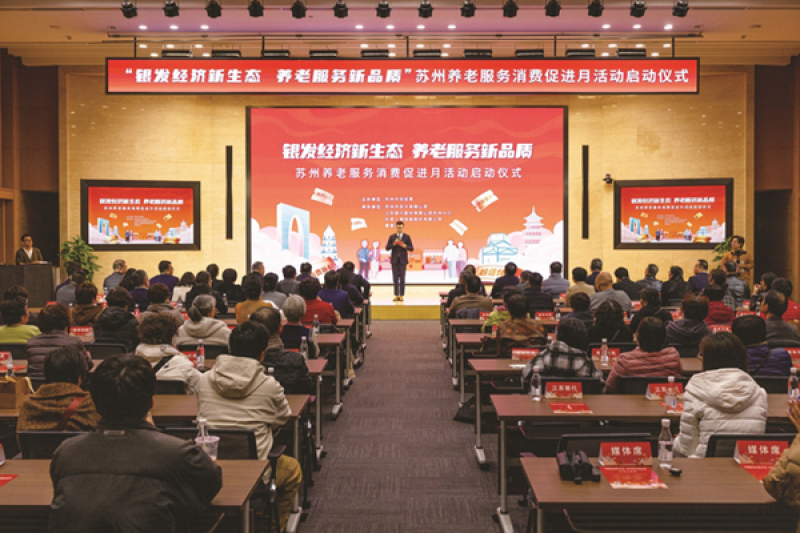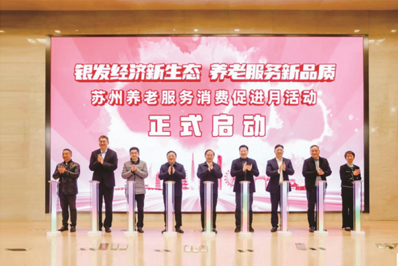 苏州养老服务消费促进月活动启动仪式上,苏州市民政局围绕“衣食住行”“文教娱乐”“医护康养”三大主题,推出17项助老惠老优惠活动,涵盖老花镜特惠、服饰折上折、美食消费补贴、旅居试住特惠、银发旅游快乐行、定期体检优惠、家居焕新改造补贴、养老辅具租赁补贴等惠民项目。江苏银行与苏州市民卡公司、东吴人寿、曹操出行共同宣读并联合发布《苏州养老服务生态圈共建倡议书》,为构建完善的苏州养老服务体系贡献力量。
