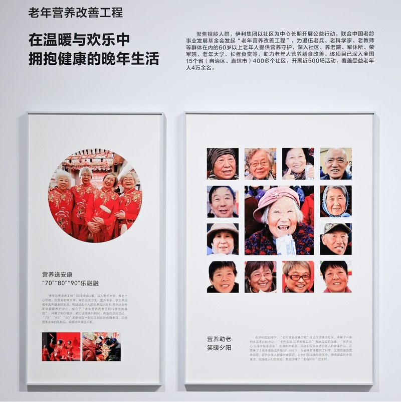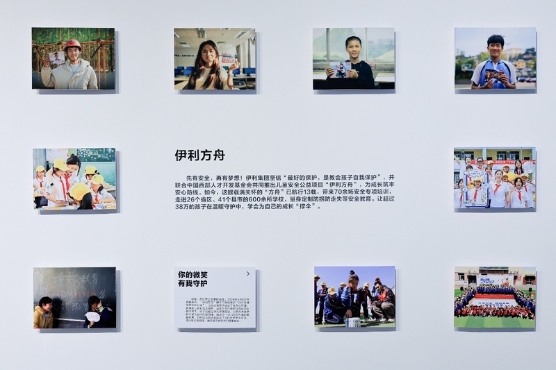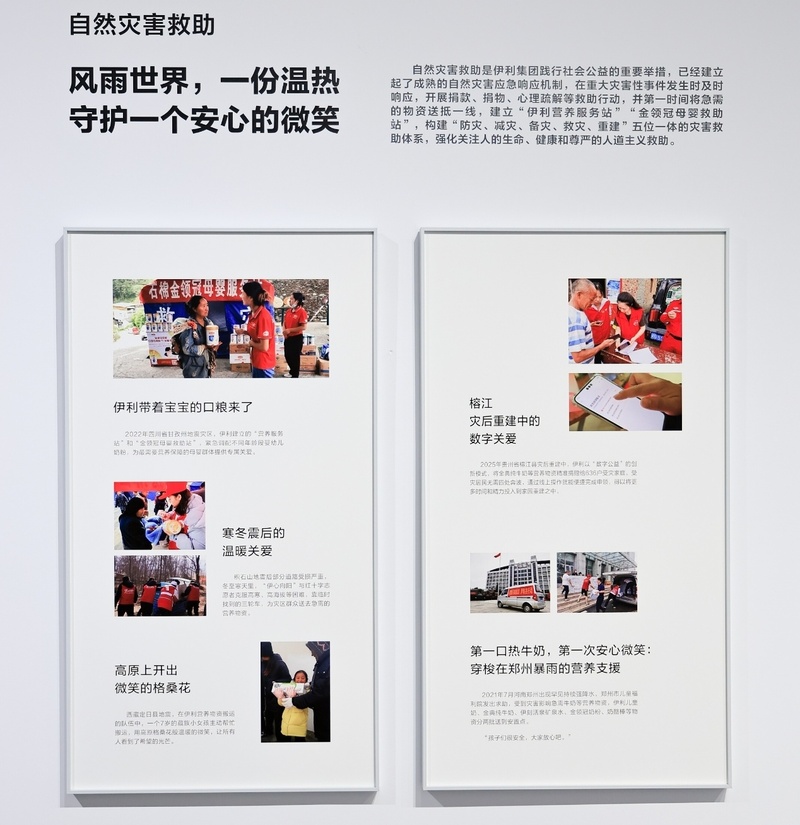 艺术与公益交织背后,藏着伊利多年深耕公益、长线守护美好的温暖故事。展墙上“一张拍不正的合影”是“伊利营养2030”以营养守护成长,关爱偏远山区儿童的写照;“为大象‘建食堂’”是“伊利家园行动”作为亚洲象“护象人”,践行生物多样性保护的鲜活身影;“高原上开出微笑的格桑花”是伊利在“自然灾害救助”行动中捕捉到的温暖瞬间……这些美好的故事,共同诠释了“公益搭子有伊利”的担当与温度。