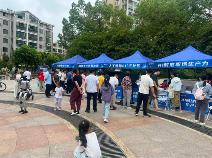 在苏州昆山、张家港、常熟、新区等多个社区现场,AI+职场、生活、教育、娱乐四大展区吸引众多居民驻足体验。现场不仅有人机互动、AI对弈、智能终端展示,还通过视频短片生动呈现人工智能如何重构日常生活。党员志愿者主动靠前服务,用当地方言讲解AI反诈技巧,帮助老年群体识别诈骗风险;一对一指导智能设备使用,化解居民日常操作难题。便民服务区提供的免费贴膜、义诊等贴心项目,更为科技体验增添了民生温度。截至目前,系列活动已吸引超过十万居民参与,成为连接智能技术与社区生活的重要纽带。