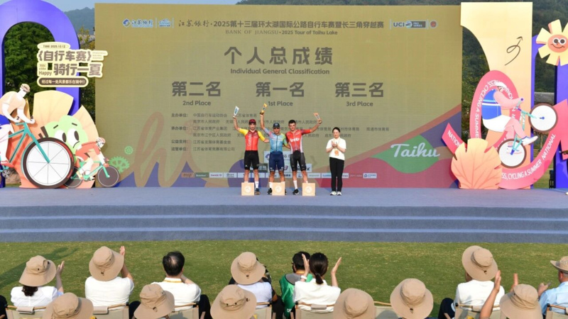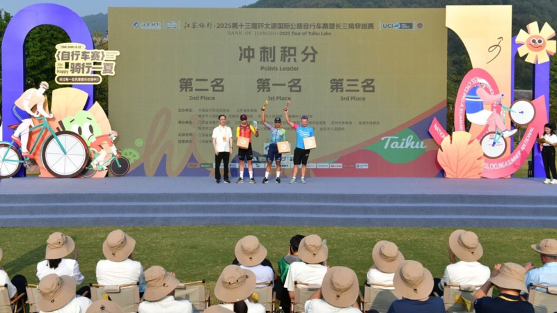 10月12日下午,江苏银行·2025第十三届环太湖国际公路自行车赛暨长三角穿越赛总颁奖仪式在无锡拈花湾·禅意小镇举行。这场兼具禅意底蕴与竞技激情的闭幕仪式,为历时4天、全程435.17公里的UCI2.pro级赛事——2025环太湖赛画上圆满句点。