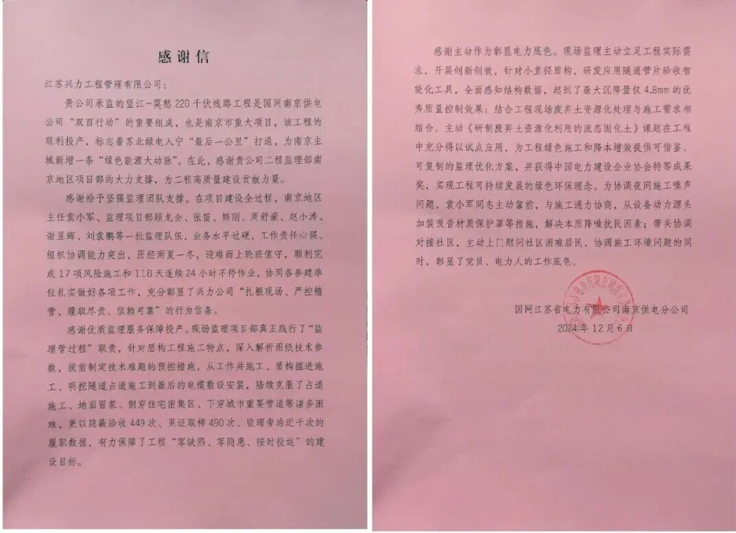 从专业到创新,从保障到服务,南京项目部以国网公司电网先锋党支部、安全生产先进集体,江苏省总工会工人先锋号,中电建协电力监理安全知识团体一等奖;3项绿色低碳示范工程、国网公司3项优质工程金奖,以及14项QC成果、7项专利的硬核实力,连续3年顾客满意度超98%、所有项目按时高质量投运的优异表现,诠释了电力工程监理人的匠心密码。未来,他们将继续以匠心精神,为行业高质量发展注入新动能。
