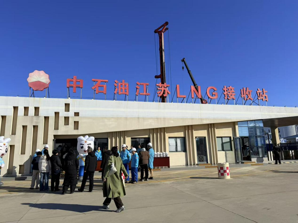 12月5日,在南通如东洋口港距离海岸14公里的阳光岛,媒体采访团如约而至,探访江苏LNG接收站这一长三角“能源粮仓”。当天,恰好是第818艘LNG船顺利靠泊的日子。 正值冬供攻坚的关键节点,江苏LNG接收站也迎来了一年中最繁忙的时段。在蓝天下,6座巨大的“气墩墩”巍然矗立,这些LNG储罐总容量达108万立方米,“在满罐容的情况下,够全江苏省用一个星期!”工作人员自豪地介绍。LNG是一种-160℃左右的超低温液态气体,如何储运?通过与现场技术人员交流,记者们深入接收站码头、储罐区、中控区等地,详细了解了LNG 卸载、气化、外输全链条保障体系。今年,新建码头工程、扩建储罐工程全面开工建设,未来长三角地区保供“底气”将愈发充足。