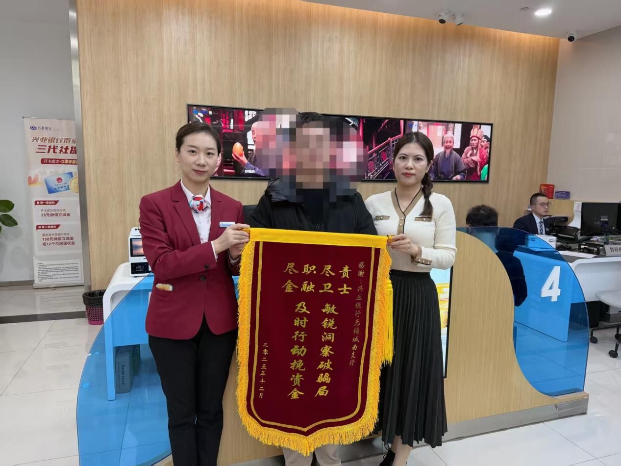 兴业银行始终以守护人民财产安全为己任,将防范电信诈骗作为践行金融为民初心的重要抓手。近日,兴业银行无锡分行辖属城南支行凭借敏锐风控嗅觉与高效警银协作机制,成功识破一起针对留学生的大额电信诈骗案,在反诈“黄金72小时”内精准阻截涉案资金91万元。