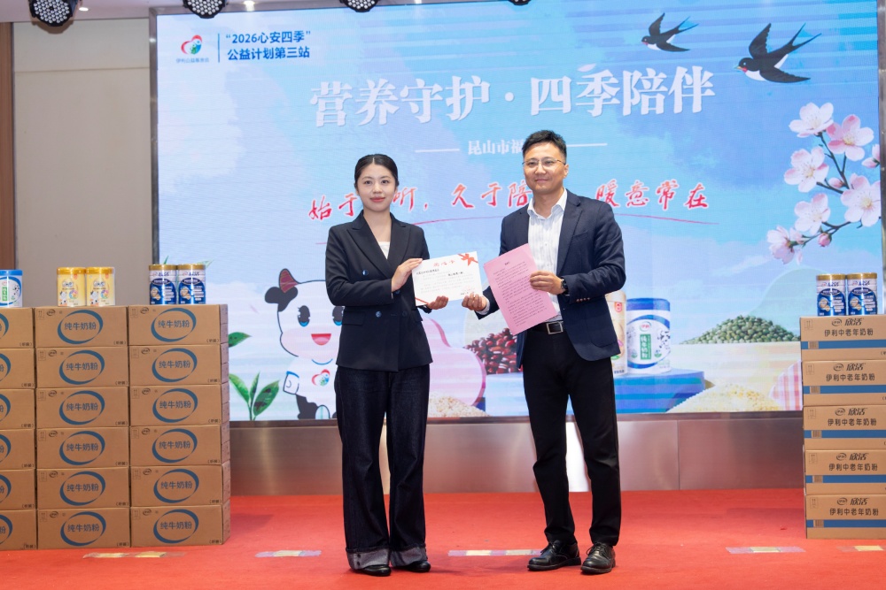 伊利公益基金会代表在致辞中表示:“公益不止于物质的给予,更在于尊重与长久的陪伴。‘心安四季’通过营养与陪伴的结合,实现‘双向心安’。来到昆山,我们希望让陪伴更日常、更温暖。”