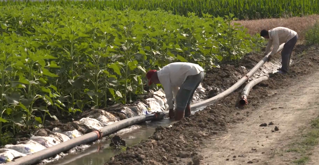 6月11日,土耳其苏格祖村村民使用胡努特鲁电厂转化的再生水浇灌农田。(视频截图)