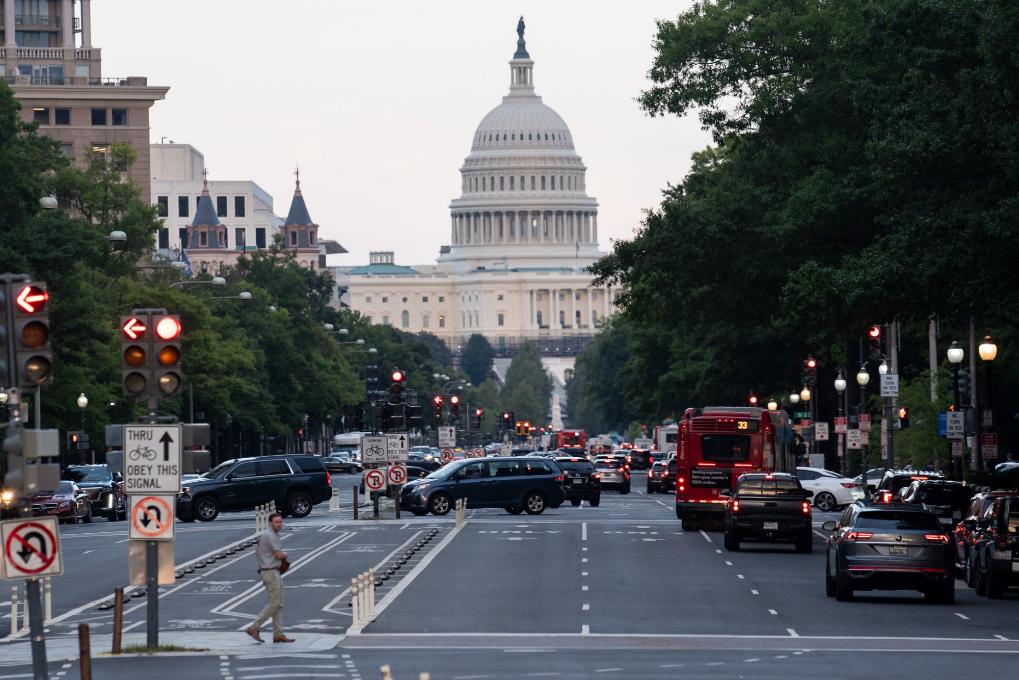 9月13日,车辆从美国首都华盛顿国会附近驶过。新华社记者刘杰摄