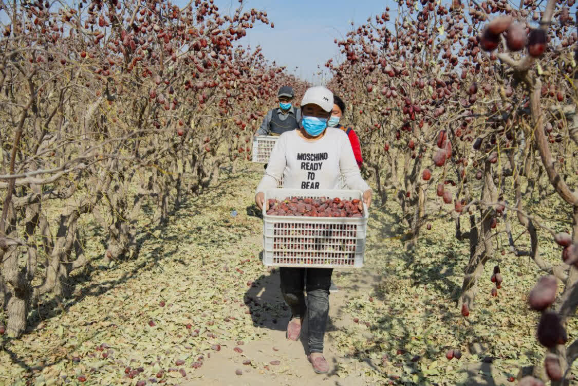 洛浦县位于新疆西南部,玉龙喀什河下游,地处昆仑山北麓,塔克拉玛干大沙漠南缘,是和田地区“和墨洛”核心区,也是和田大枣的源产地。红枣是洛浦县第一大果品产业,自上世纪60年代起,该县红枣从无到有、从有到兴,已经走出一条规模化、标准化和产业化的发展之路。2020年,洛浦县红枣种植面积为17.33万亩,总产量达5万余吨,1万余户农民通过种植红枣增收。(光明日报全媒体记者 王瑟 通讯员 李蓉)