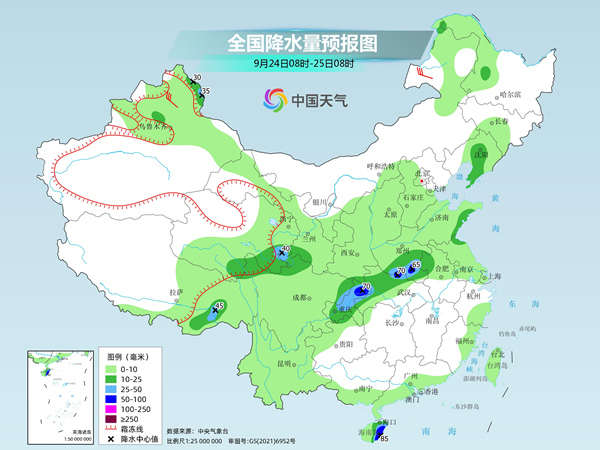 今天(9月24日)重庆、湖北、河南等地仍将阴雨频繁,局地有暴雨,明天降雨将有所减弱。气温方面,在冷空气影响下,今天北方多地最高气温将创今年立秋以来新低,而南方在副热带高压的控制之下,未来几天30℃范围将会扩大。