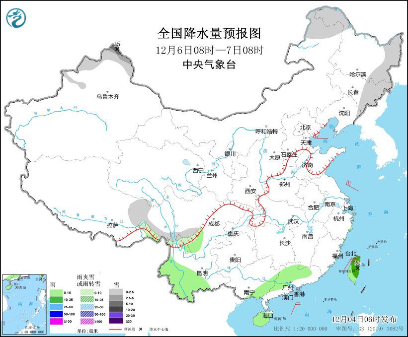 全国降水量预报图(12月4日08时-5日08时)