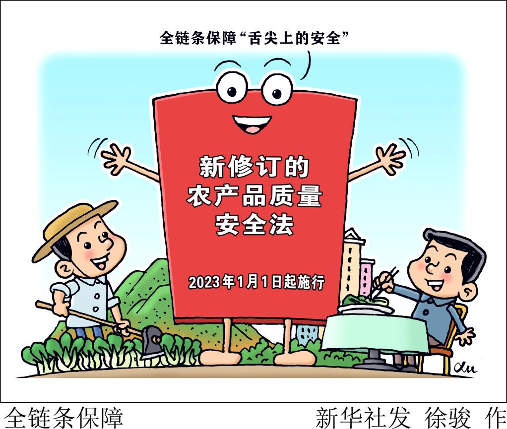 新版农产品质量安全法自1月1日起施行,实施农产品质量安全承诺达标合格证制度,与食品安全法衔接,实现从田间地头到百姓餐桌的全过程、全链条监管。