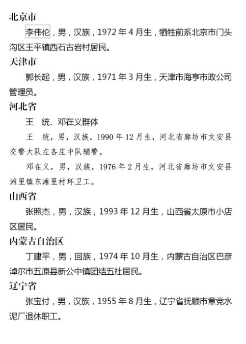 2023年第四季度见义勇为勇士榜名单 来源:中央政法委长安剑微信公众号