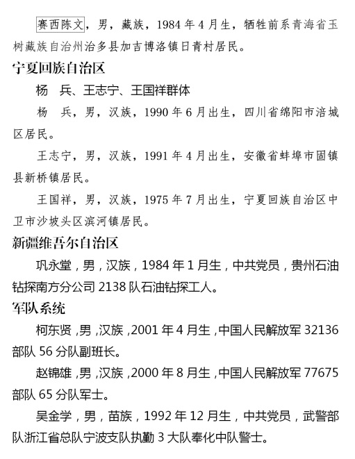 上榜勇士中有勇斗持刀犯罪嫌疑人身负重伤的张照杰、姚玉龙、王冲、王永芳;有从高桥跳水救人的周中磊、曾文文、周海;有从随时可能爆炸的事故车辆中救出司机母子的汤益鑫;有冒着煤气罐爆炸危险制服劫持孩子歹徒的蔡国荣;有救援被困电梯内同事而导致左小腿截肢的翟元敏;有休假期间水下连续救人的现役军人柯东贤、吴金学、赵锦雄;更有见义勇为英勇牺牲的李伟伦、张嘉俊、张可可、李峰武、安西德、何同猛、曾维龙、胡喜明、李振华、东周才仁、赛西陈文11位同志。勇士们见义勇为事迹鼓舞人心、振奋精神、催人奋进。他们用血汗甚至生命秉承、诠释了中华民族传统美德,用奋不顾身的实际行动践行了社会主义核心价值观。