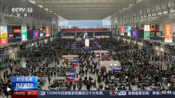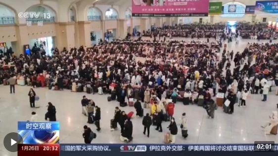 总台记者 温超:陕西西安北站预计26日能够发送旅客13.9万人次,加开了兰州、上海等方向临时动车组列车12列。西安北站可以说是西北地区最大的铁路客运枢纽,在为期40天的春运里,这里预计发送旅客会达到567万人次。