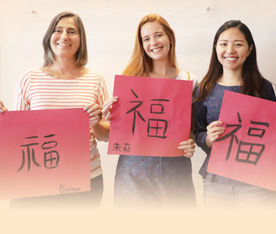 当地时间1月19日,位于巴西里约热内卢的“你好中国”汉语学校里,学员们通过学写“福”字了解中国传统文化。