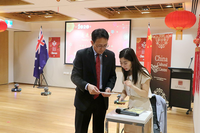 2020年1月20日下午,悉尼中国文化中心的工作人员正在紧张忙碌着,今晚这里将举办“走进中心过大年——中澳青少年文化科技交流活动”,即中心2020年“欢乐春节”系列的首场活动。悉尼中国文化中心兼中国驻悉尼旅游办事处主任肖夏勇也在和大家最后确认一些细节。