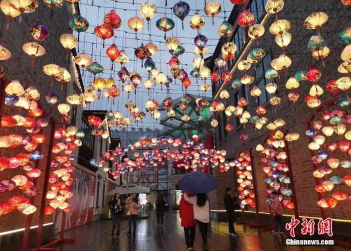 春节临近,全国各地街头张灯结彩年味渐浓。中新社记者 张茵 摄