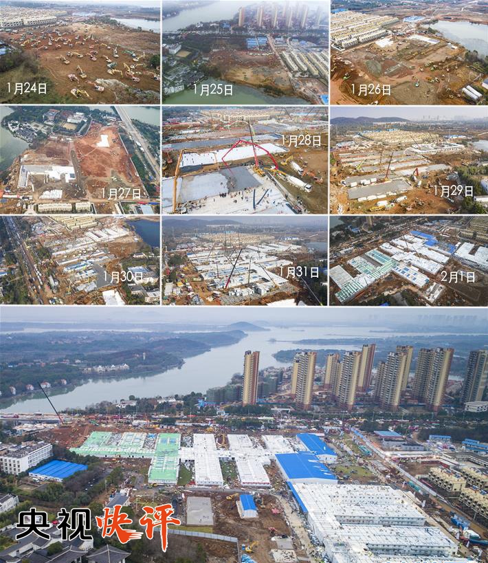 从1月23日正式立项到2月2日完工交付,短短十天,一座建筑面积达3.4万平方米、编设床位1000张、设施完备的传染病医院拔地而起,成为抗击疫情前线新的战略支点。在网络上,多达8000多万人次的网民在线观看央视频全程直播武汉火神山、雷神山两座医院建造过程,为建设者鼓劲,为武汉加油!