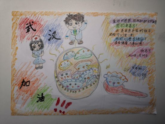 同济医院小儿外科副主任医师杨继鑫的女儿为医护人员画的画