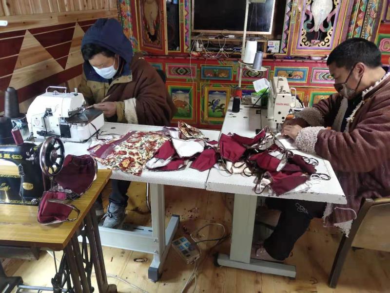 2月5日,四川省金川县毛日乡热它村活动室里一片忙碌景象,纫、剪布料、消毒......二十几个村民正在有序地缝制口罩。