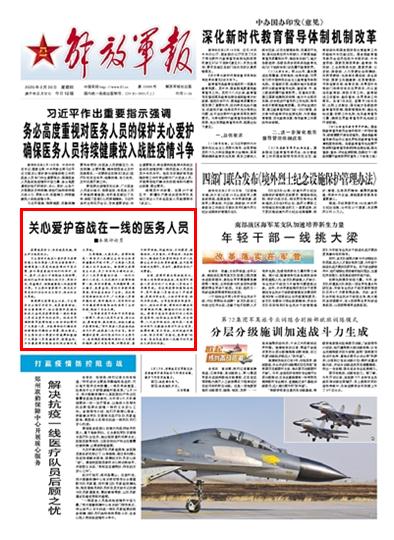 “全军要在党中央和中央军委统一指挥下,牢记人民军队宗旨,闻令而动,勇挑重担,敢打硬仗,积极支援地方疫情防控。”军队医务人员视救死扶伤为天职,视服务人民为宗旨。面对肆虐的疫情,他们坚决听从习主席号令,发扬越是艰险越向前的大无畏革命精神,敢于攻坚克难、冲锋在前,善于科学施救、快速施治,不怕疲劳、连续作战,不负重托、不辱使命,用赤胆忠心、精湛技艺和责任担当守护人民群众生命安全和身体健康,成为疫情防控的先锋队、突击队,赢得社会的广泛赞誉。
