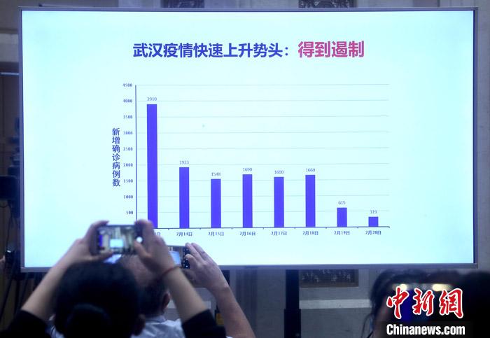 图为发布会上展示近期疫情相关数据。