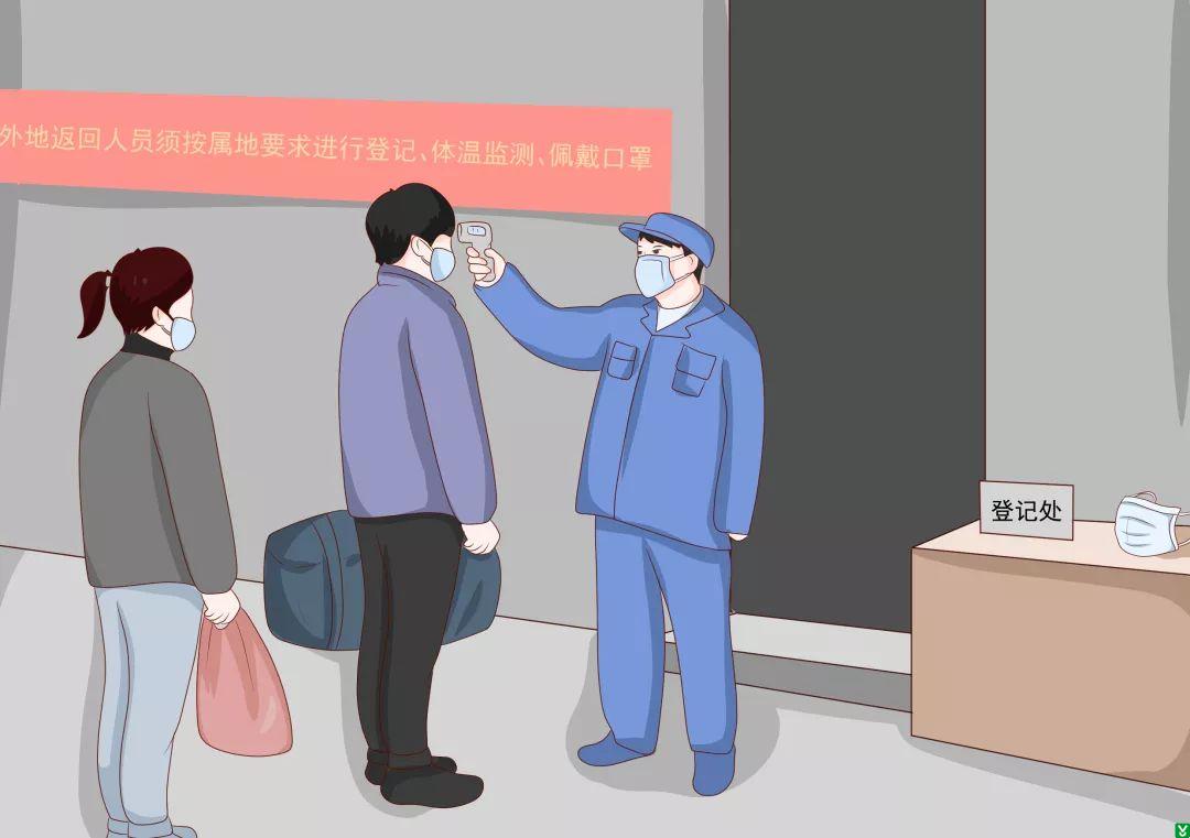 企业要以适当方式要求并指导外地返回人员按属地要求进行登记、体温监测、佩戴口罩等健康管理措施。告知员工就诊信息。