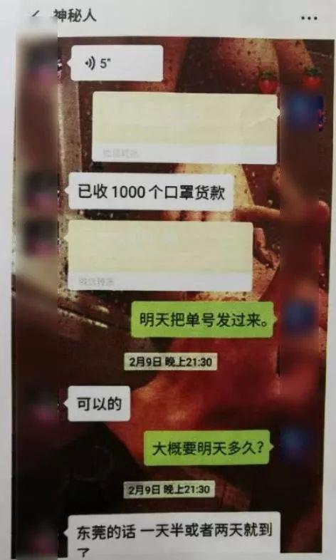 2月5日,曹先生通过微信朋友圈得知一好友正在售卖口罩,两人谈好以1.76元的单价交易5000个一次性口罩,先付款后发货。