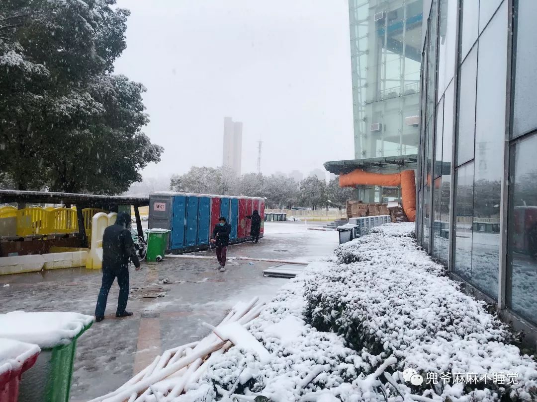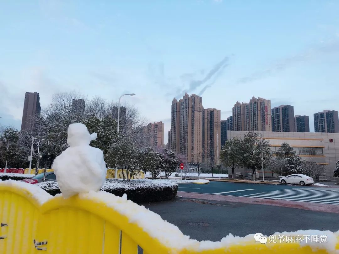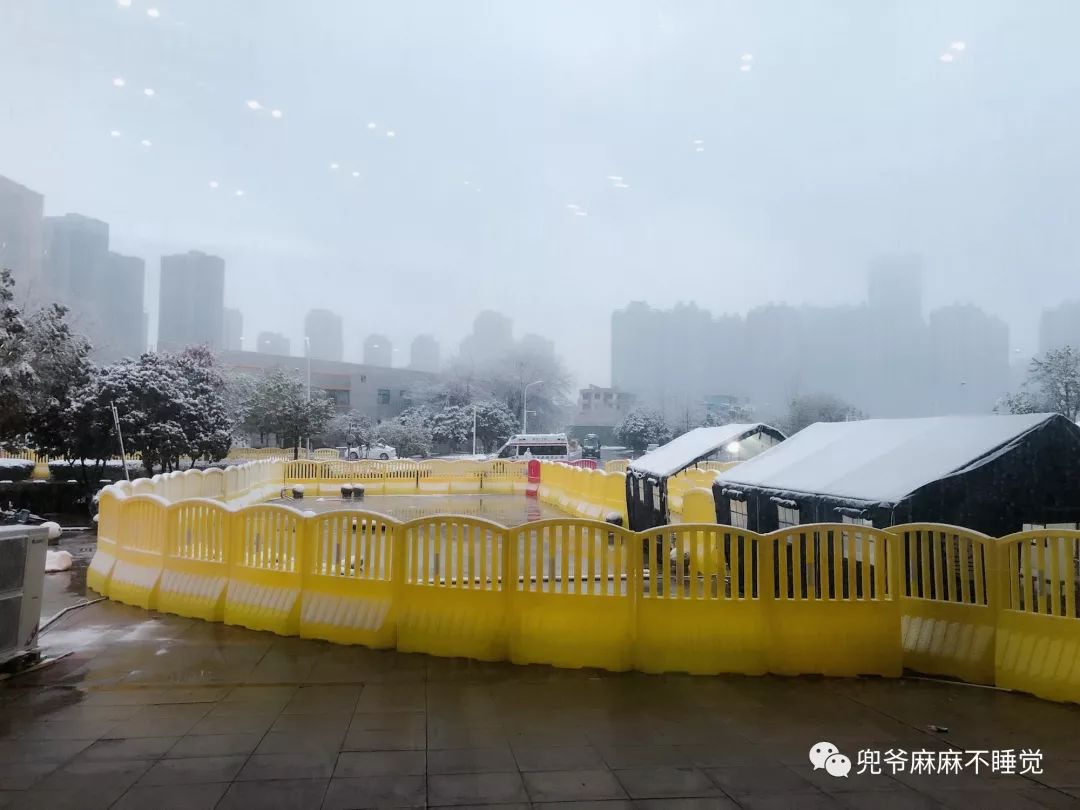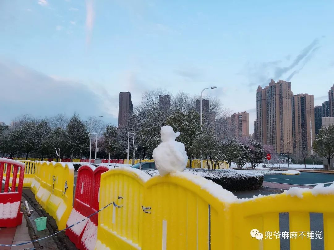 应该是在方舱门口执勤的工作人员,堆了个小雪人放在防护栏上,莫名觉得好可爱。