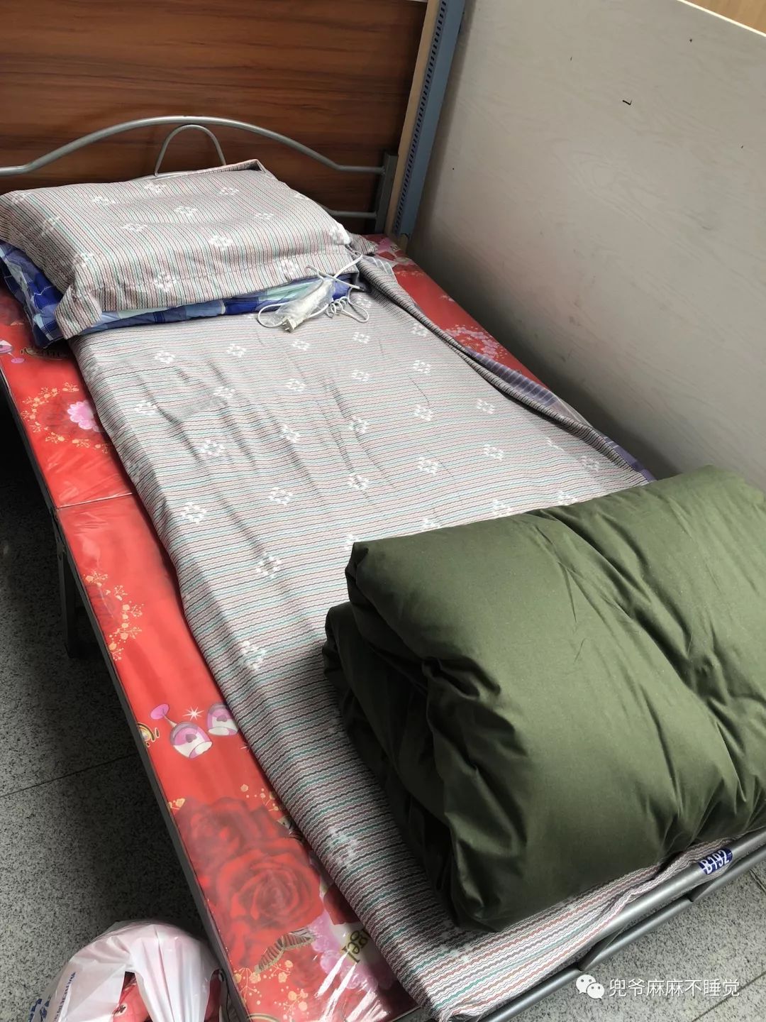 我登记完后进去跟着护士来到了我的床位,床上有电热毯、枕头、一床薄被子、一床厚被子。