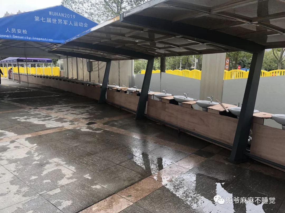整个体育馆被分成了A、B两个大区,每个大区又分为了一片片小的隔离段,男女分开。