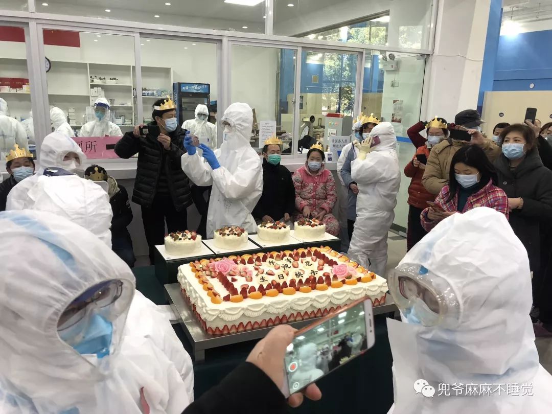 17日的中午,在天津医护团队的策划下,在这个特殊时期,在方舱这个特殊环境下,一场生日聚会隆重举行了,寿星们是全舱2月份生日的病友。